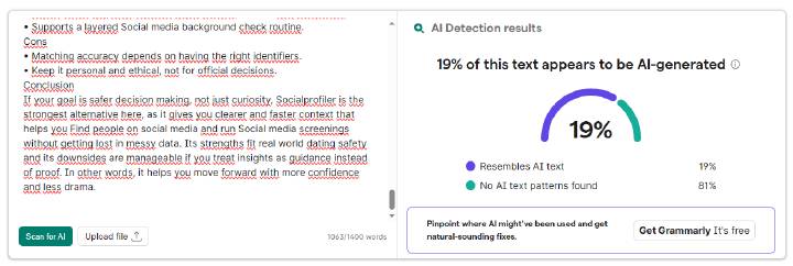 If your goal is safer decision making, not just curiosity, Socialprofiler is the strongest alternative here, as it gives you clearer and faster context that helps you Find people on social media and run Social media screenings without getting lost in messy data. Its strengths fit real world dating safety and its downsides are manageable if you treat insights as guidance instead of proof. In other words, it helps you move forward with more confidence and less drama.